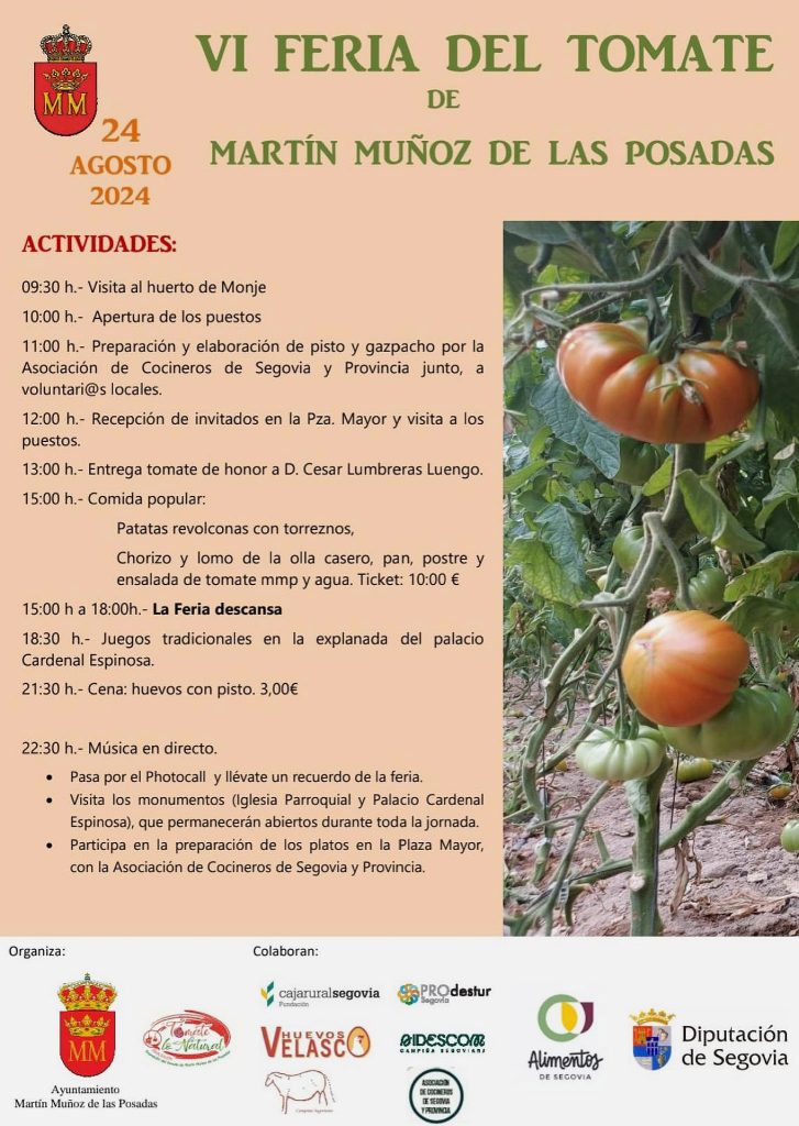 En el entorno de los Alimentos de Segovia Texto: Juan José Alonso Gallego La plaza Mayor de Martín Muñoz de las Posadas ya está dispuesta para acoger la VI edición de la Feria del Tomate, con el tomate como producto protagonista, rodeado de los artículos que forman la base de Alimentos de Segovia. Los numerosos […]